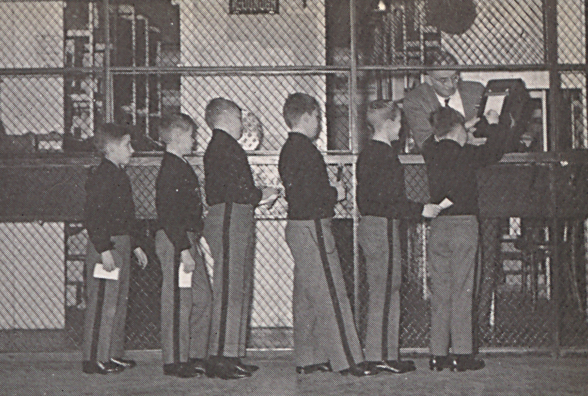 An article in the May 5, 1928, issue of The Week described the frenzy that took place when the store opened in the evening. “Most boys feel pretty much lost without a bite of candy now and then. And at the School, they are not allowed to go to the nearest candy store, about a mile away. So the School itself has a small counter. Usually, the end of supper starts a wild rush for the store. A line is no time in forming and it is not usually very quiet. Mr. Davis comes up from the dining room and somehow gets behind the counter. Then the dispensing of the candy begins.”