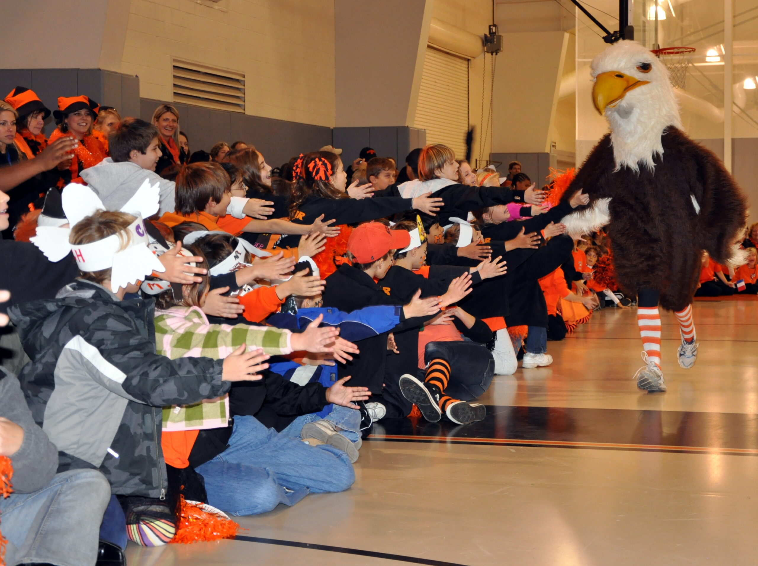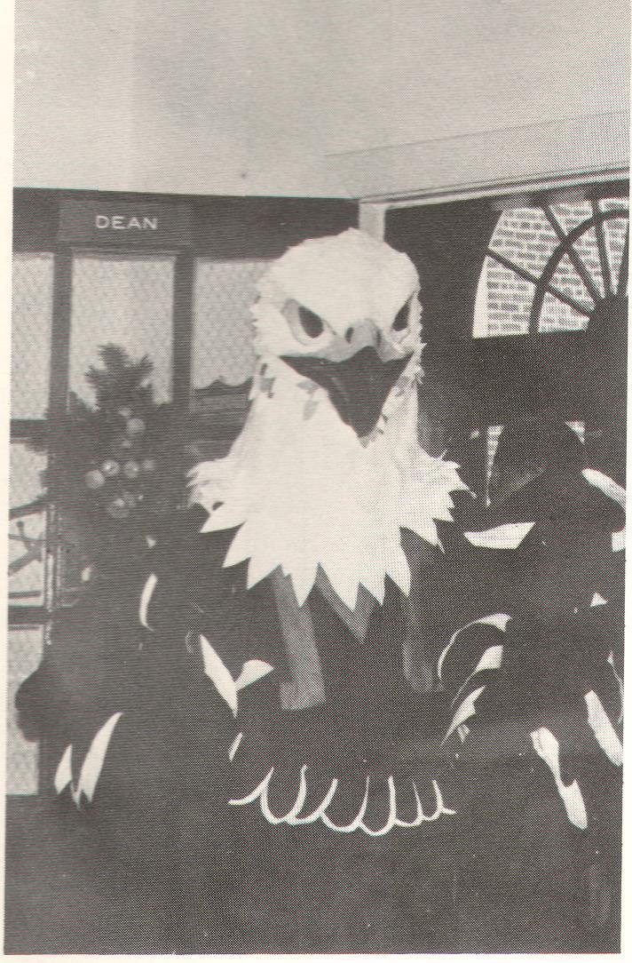 When McDonogh School dropped its semi-military program in 1971, the time was right for an official school mascot. The student body was tasked with finding a new nickname as part of the overall change for the School. The “Eagles” won the popular vote—a tribute to the eagle depicted on the McDonogh School seal and on the cadets’ uniform hat. A coordinating committee got to work designing the new mascot, and E. Carey Kenney, the head of the Art Department, made their ideas a reality. Before long, an Eagle costume was created, and Jeffrey Rogers (1974), a boisterous member of the cheerleading squad, was selected to wear it. Despite the heavy head and the stifling hot, feathered outfit, wearing the Eagle costume was, and still is, a popular duty.