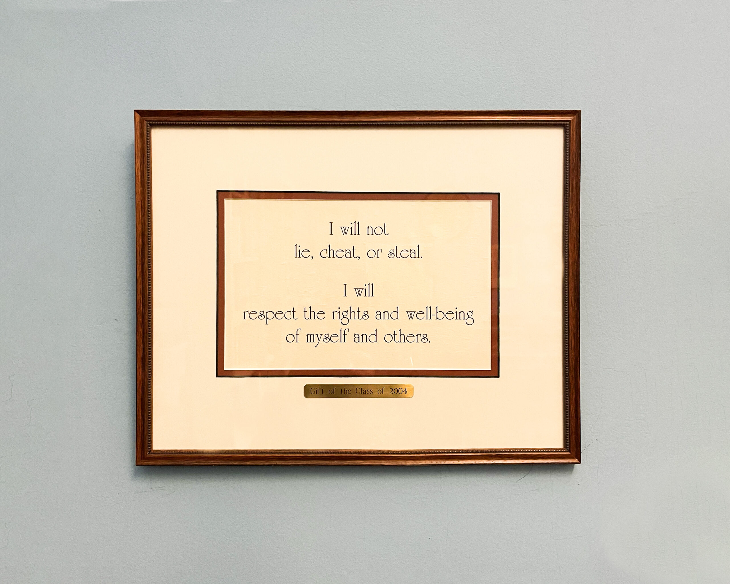 The Committee developed a simple code of honor that not only teaches and reinforces the internal checks and balances necessary in making ethical decisions in difficult situations but is also a personal commitment to the welfare of the community. The success of the honor code is dependent upon student investment and faculty/administrative support.