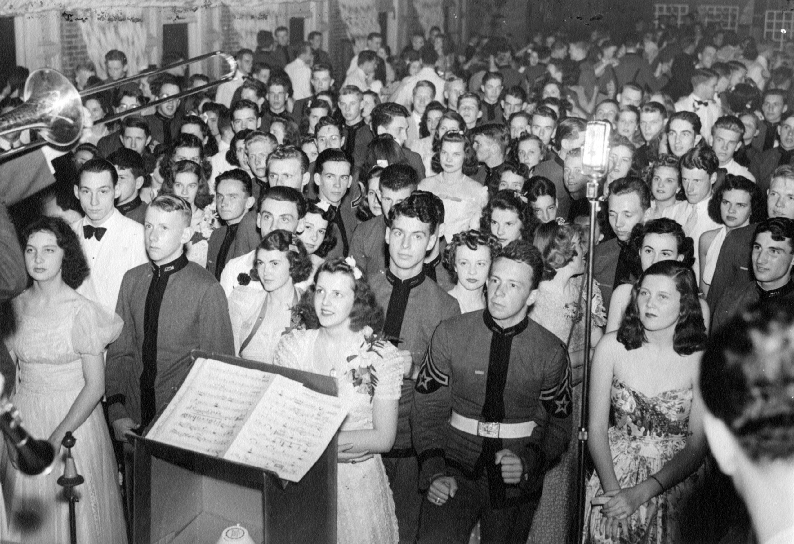 In 1927, the Cotillion Club was formed “for the purpose of giving dances for the school.” An article in the January 15, 1927, edition of The Week described: “Due to the fact that a few of the boys are unable to dance, an instruction dance will be held in the lounge, on Saturday afternoon, January 15. Mr. Barger and Mr. Duncan have consented to supply ‘drags’ and we hope the boys will show their appreciation by a generous turn-out. The first dance of the series under the auspices of the Cotillion Club, will be on Lincoln’s Birthday, Feb. 12. A good orchestra will furnish music. The gymnasium will be decorated by a Club Committee and we can promise a most enjoyable evening for all who attend. Come on boys, let’s all turn out and make this a big success!”