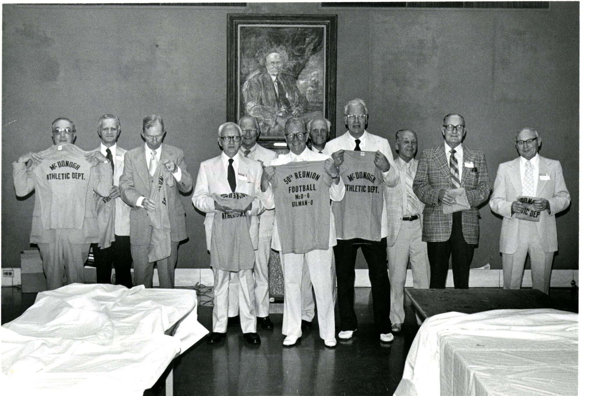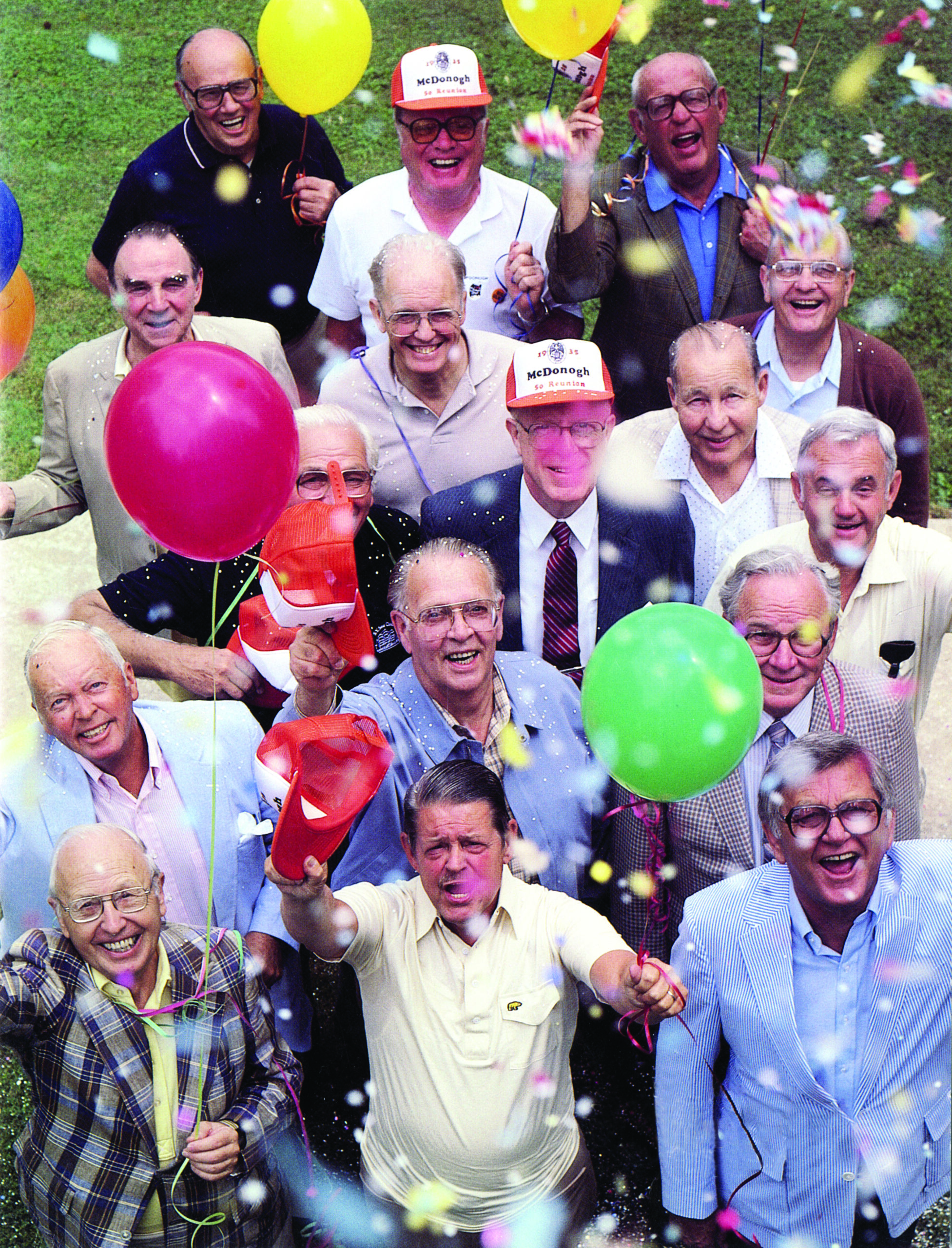 In the early years, all “old boys” were encouraged to attend the Alumni Reunion day which often coincided with annual school-wide events including the Spring Fair (see story No. 5); Competitive Drill (see story No. 115); Memorial Day (see story No. 126); John McDonogh Day/Founders Day (see story No. 51); Commencement (see story No. 141); milestone anniversary celebrations (see story No. 70); and the McDonogh vs. Gilman Football Game (see story No. 61). Class reunion attendees enjoyed time on campus with alumni spanning the decades as well as class parties where they could really catch up.
